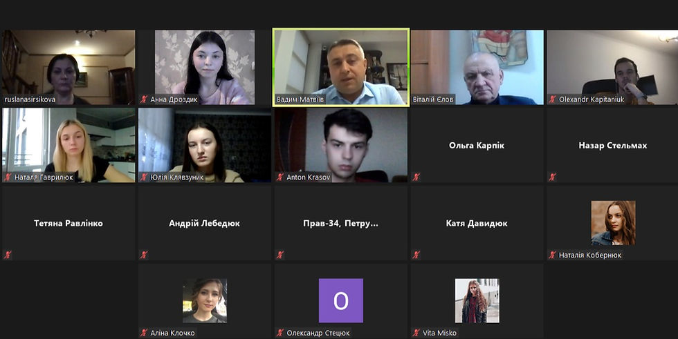 Керівник юридичної клініки «Ad Astra» Волинського національного університету імені Лесі Українки ( м.Луцьк) Віталій Єлов організував та провів онлайн зустріч студентів юридичної клініки із колишнім випускником юридичної клініки , нині відомим адвокатом Вадимом Матвіївим.